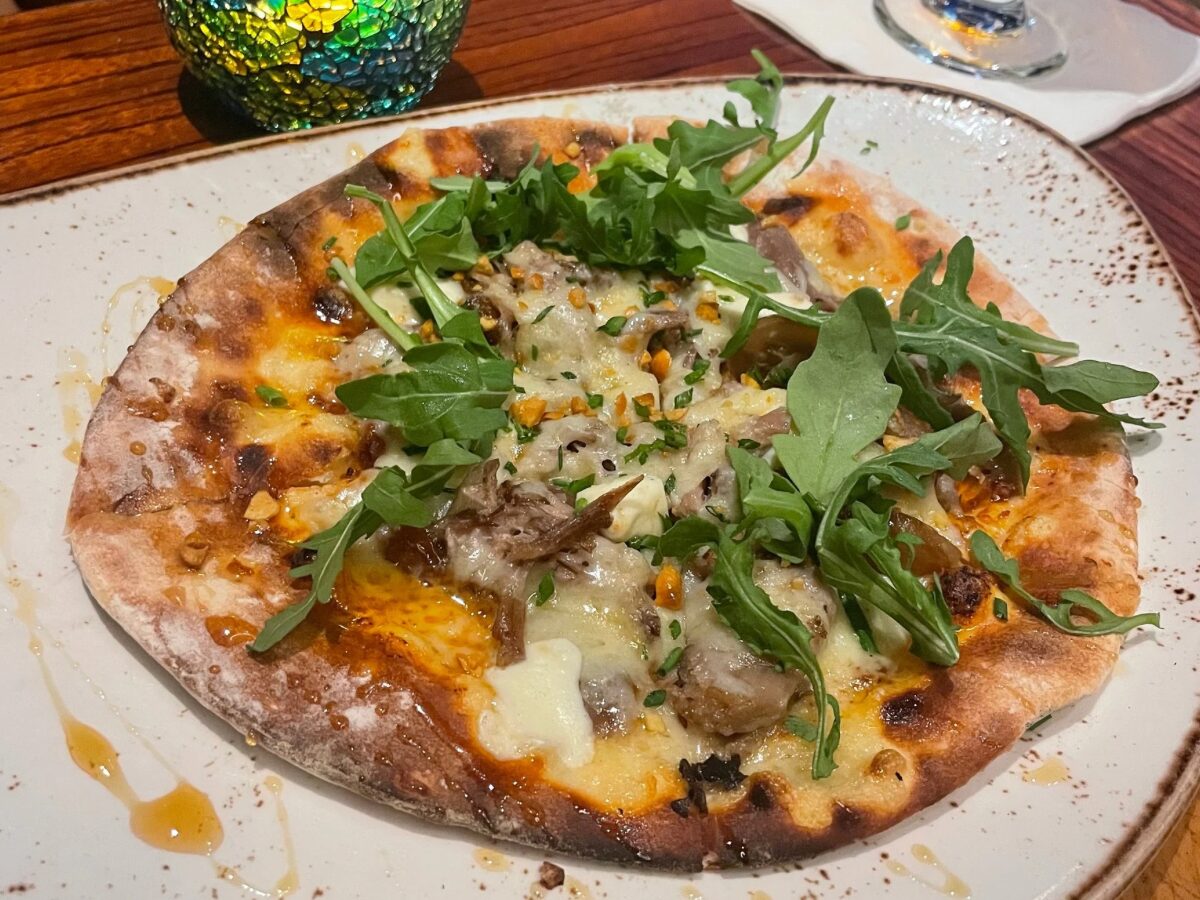[Duck Confit and Honey Raisin Flatbread ]