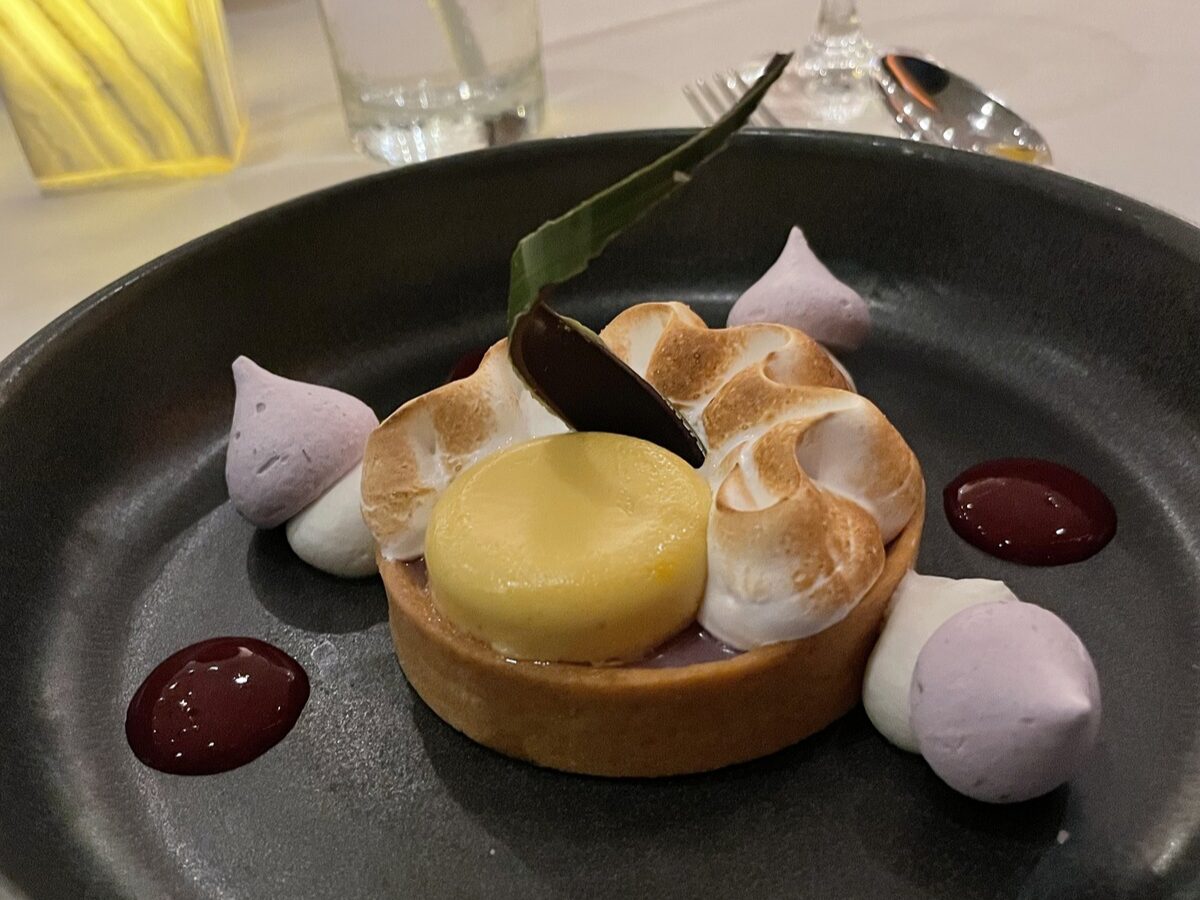 (ブルーベリーメレンゲ、バニラ・シャンティイ、ラズベリー・クーリ、ゴートチーズムース)
