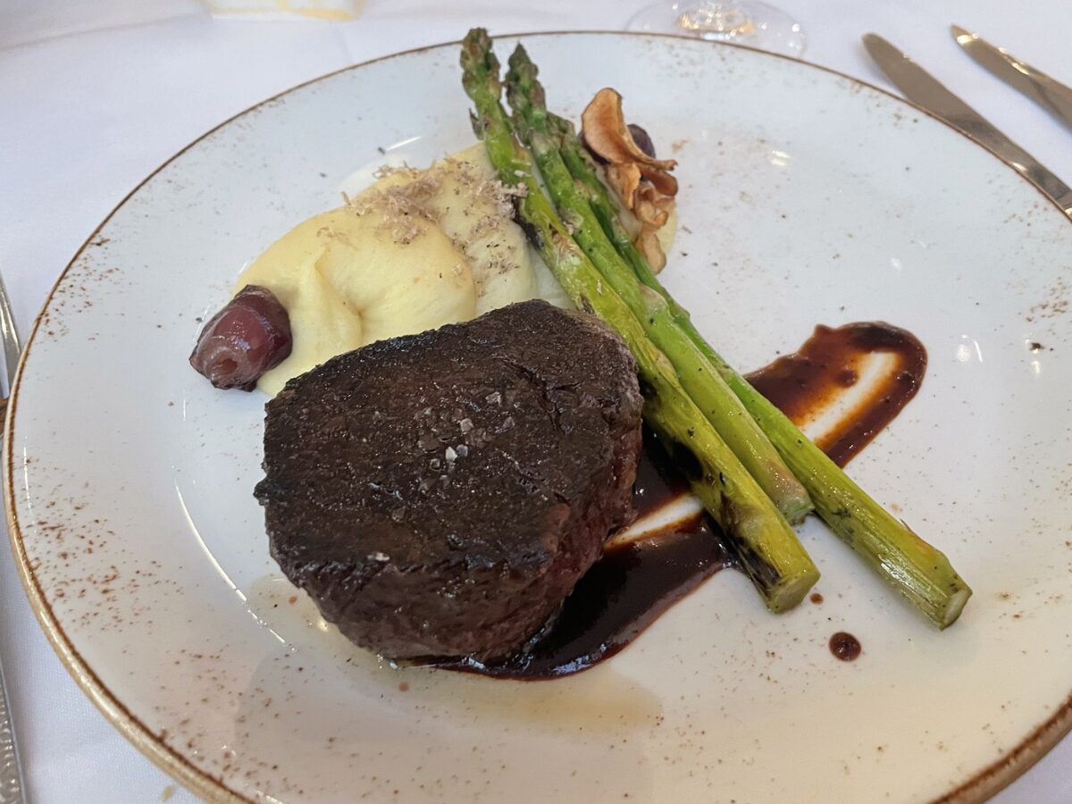 (ローストガーリックポテトピューレ、チャード・ブロッコリーニ、フィグ・オニオンマーマレード、トリュフコニャックデミソース)