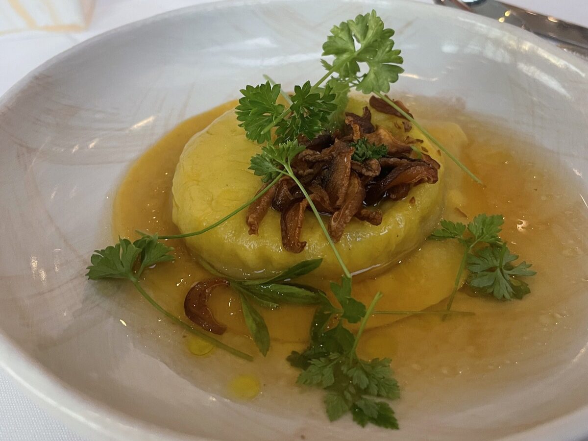 (クリーミーゴートチーズポレンタ、ローストポークベリー, 熟成バルサミコ有機キノコ、ジンファンデル・グレーズ)