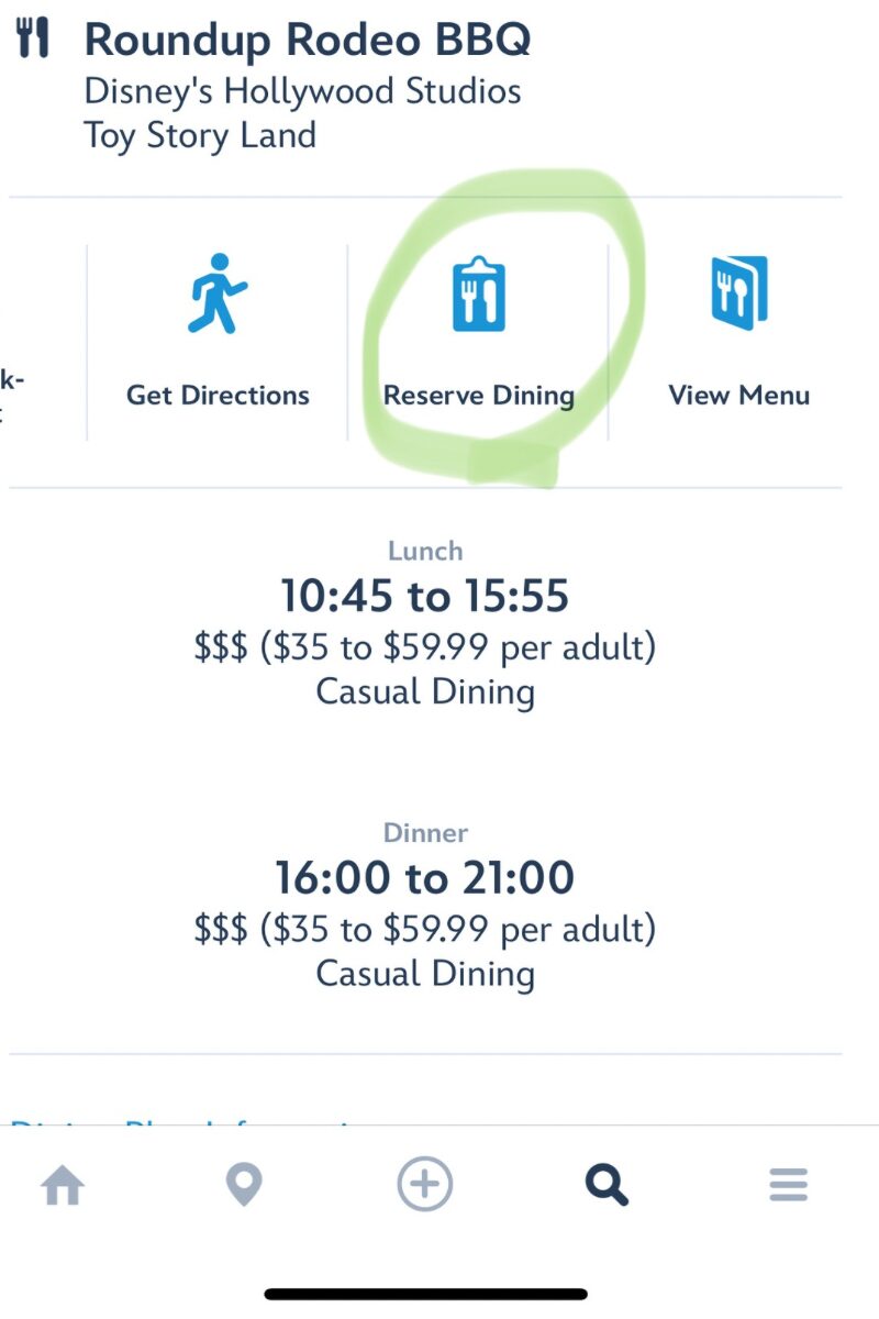 右から2番目に”Reserve Dining”の項目があります。