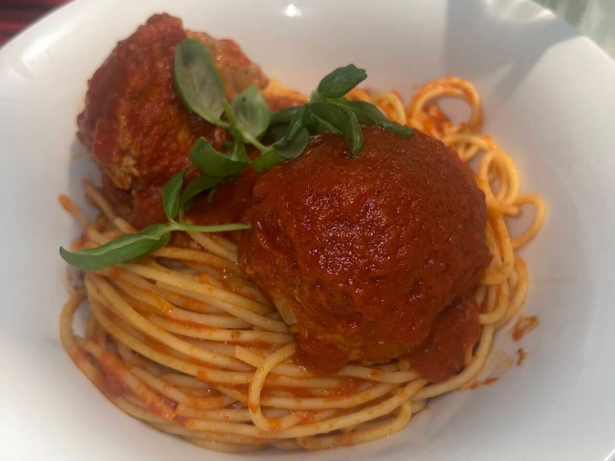 牛と豚の合挽肉でできた大きなミートボールがどーんっ!